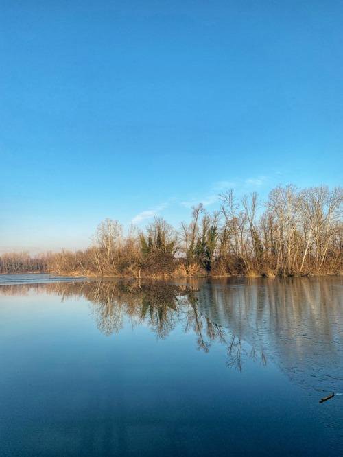 Passeggiata al laghetto di un’ex cava tra Maerne e Martellago, due paesotti dell’entroterra veneziano. Attorno al lago, c’è un grande parco pubblico, molto frequentato soprattutto in primavera ed estate. Oggi sei gennaio, giorno del mio compleanno, è parzialmente ghiacciato.