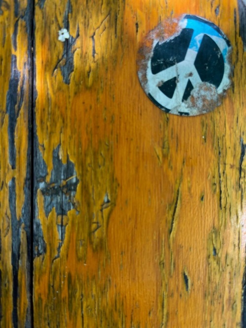 L’immagine non è perfetta, la leggera sfocatura la rende un po’ debole ma in questo caso è il messaggio che più conta, messaggio che naturalmente debole non è. Ci siamo seduti “fatalità” su uno dei tantissimi tavoli all’esterno di uno dei ristori del Forte Marghera e in un angolo di questo tavolo era impresso questo simbolo. Questa rappresentazione in voga soprattutto negli anni settanta e ora quasi obsoleta ma invece andrebbe ancora ripresa, visto le guerre i disordini e i malesseri assai presenti in ogni parte del mondo.