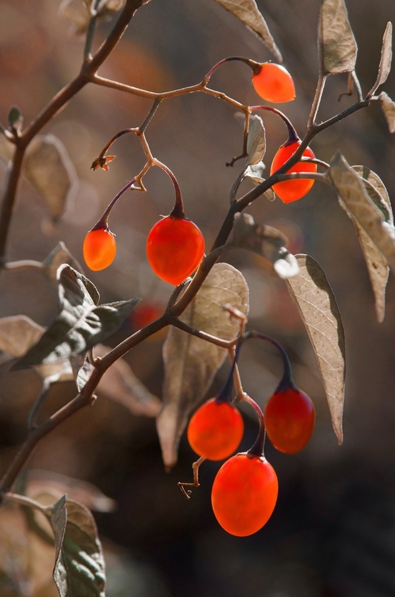 Non conosco il nome di questa pianta. Mi hanno colpito le bacche rosse su una pianta con le foglie leggermente secche, come se il fogliame avesse deciso di donare la propria linfa per poi morire.
