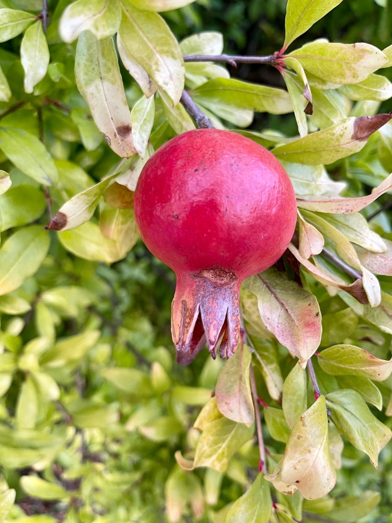 La pianta del melograno ha una vita secolare, molto dipende da dove vive. Nel mio piccolo giardino di trenta metri quadri, oltre a un giuggiolo di oltre trent’anni, un giovanissimo ulivo di due anni che ha preso il posto di un albicocco, un tasso di quindici anni, c’è questo melograno anch’esso di poco più di trent’anni. Non sarebbe quindi vecchio ma le sue condizioni, almeno da come dimostra, non sono proprio rosee. Nonostante le sue condizioni riesce a regalarci qualche frutto.