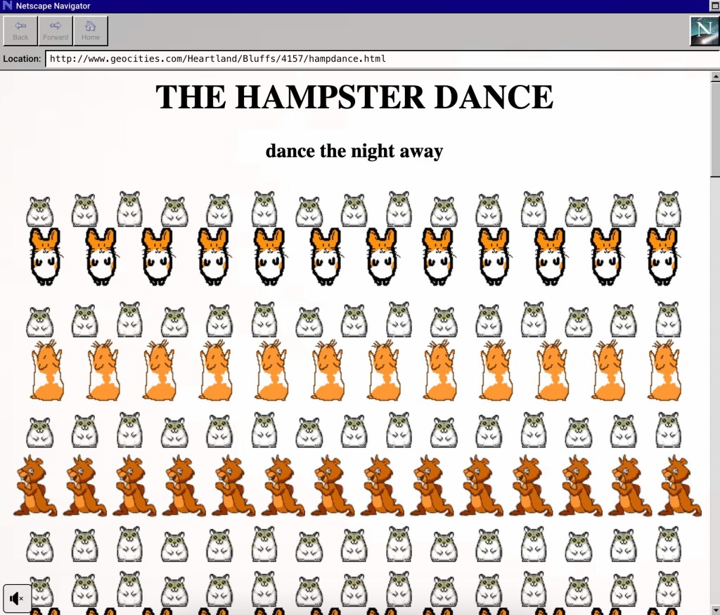 Creata da Deidre LaCarte, una studentessa d’arte di 37 anni e istruttrice di arti marziali della British Columbia, la pagina web di Geocities era un omaggio al suo criceto domestico, affettuosamente soprannominato “Hampton the Hampster”. La pagina è stata creata come parte di un concorso per vedere quale sito web potesse raccogliere il maggior numero di visualizzazioni tra i suoi amici e la sorella. Alla fine del 1999, circa 17 milioni di persone avevano visitato la pagina. La popolarità del sito ha generato un’ondata di imitatori, inclusi siti Web con mucche danzanti, pesci e amebe. Una canzone ufficiale degli Hampster Dance fu pubblicata nel 2000 e raggiunse il primo posto nelle classifiche canadesi.