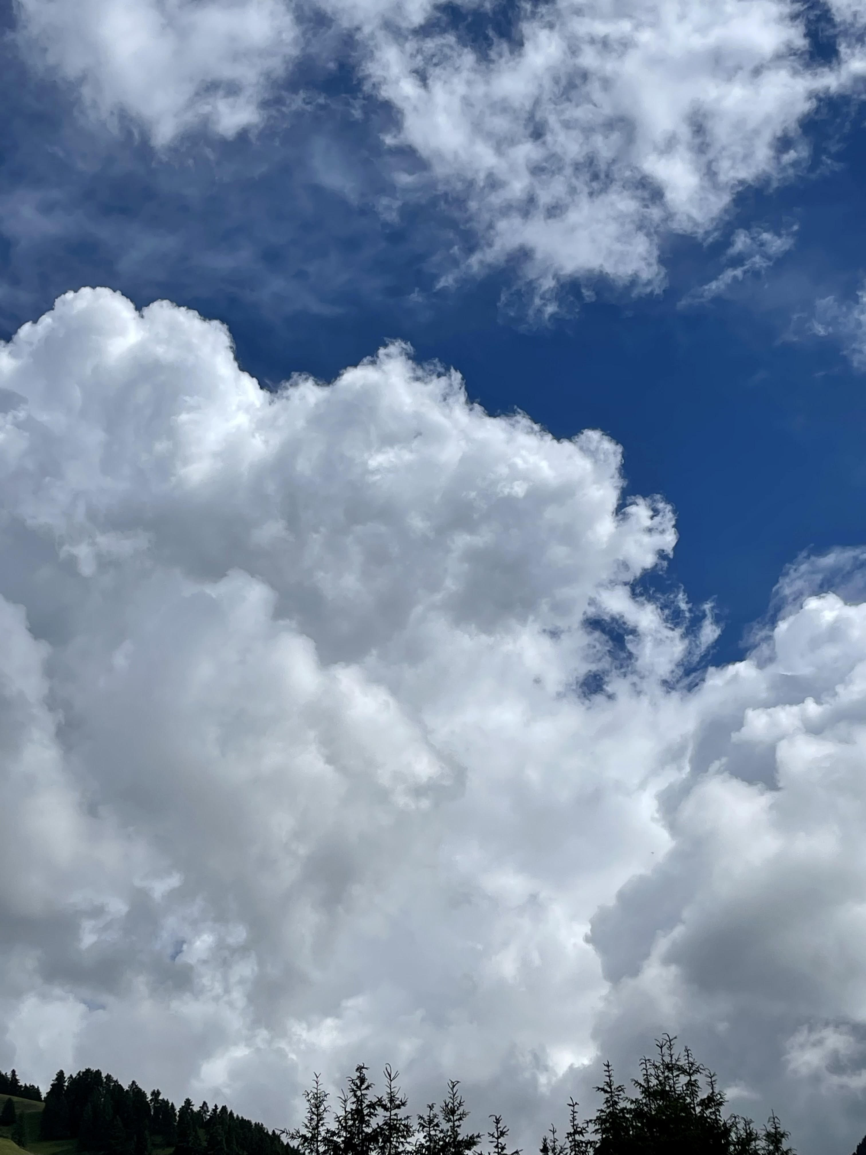 Le nuvole, come nel testo di una canzone di De André, “vanno e vengono”, in montagna però difficilmente si “fermano” anzi sono in continuo movimento e con il loro colore bianco formano disegni con forme a volte reali e molto spesso astratte. In qualsiasi caso mi soffermo, magari seduto su una panchina, con la testa in sù, ad osservare il loro “viaggio”, cambiando di secondo in secondo, forma e direzione.