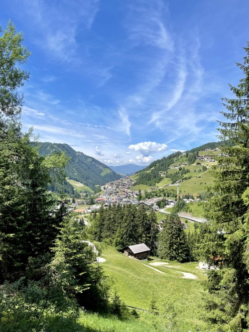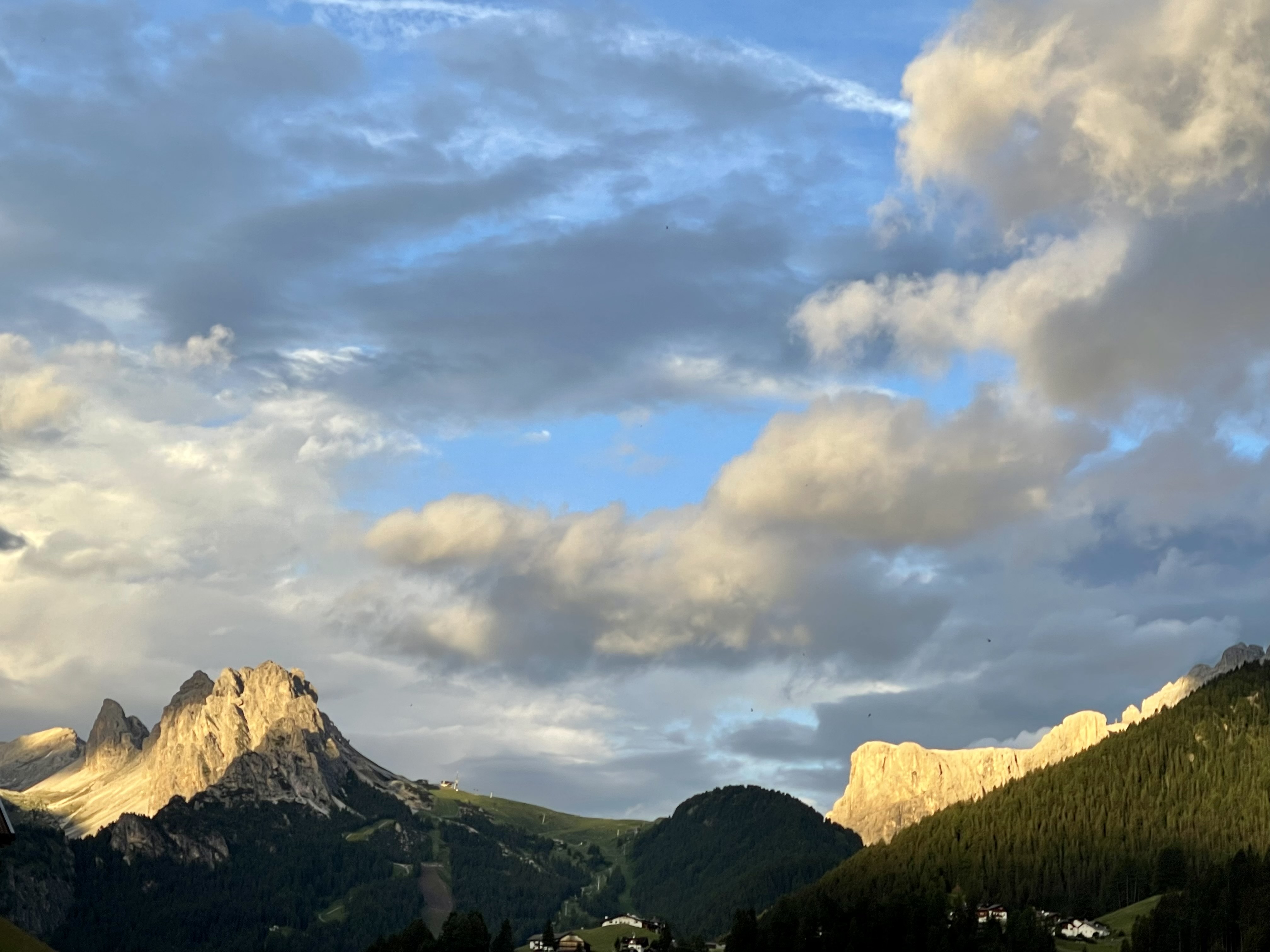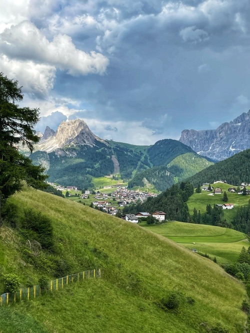 La bellezza di Selva di Valgardena sta nell’avere alle sue spalle (ad est) questo grande massiccio roccioso, imponente, maestoso e per certi aspetti ‘freddo’ e davanti (ad ovest) tutta la valle aperta e verdeggiante, distensiva ed idilliaca.