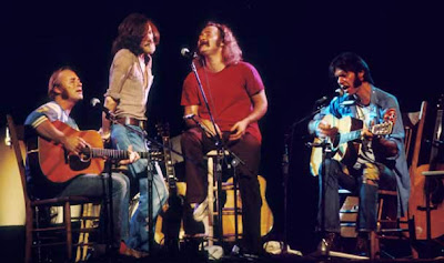 Se c’è un gruppo che rappresenta magnificamente il passaggio tra gli anni Sessanta e Settanta è quello che mette insieme David Crosby, reduce dall’avventura dei Byrds, Stephen Stills e Neil Young, che erano assieme nei Buffalo Springfield, e Graham Nash, inglese arrivato negli Usa dopo la sbornia beat vissuta in prima fila con gli Hollies. L’avventura iniziò nel 1968, con Crosby, Stills e Nash pronti a mettere insieme quelle straordinarie armonie vocali di cui diventano maestri (perfino i Grateful sostengono di aver imparato da loro quando incidono l’acustico Workingman’s Dead), la tradizione della canzone folk-rock, l’esperienza psichedelica, la lezione californiana delle “famiglie” dei Grateful Dead e dei Jefferson Airplane, con i quali erano particolarmente legati, un gusto pop assolutamente inedito, per produrre un disco d’esordio, nel 1969, che fu un capolavoro, una magnifica fotografia del sentimento dell’epoca, dolcemente in bilico fra un trasognato calore acustico e una più intima alterazione visionaria. Il loro esordio dal vivo fu glorioso, sul palco di Woodstock, e già allora la band si era arricchita della presenza del canadese Neil Young e della sua inconfondibile chitarra elettrica. Il movement era alla fine, il sogno degli anni Sessanta si era infranto, ma per Crosby, Stills, Nash & Young il momento del passaggio dal sogno alla realtà andava raccontato con passione, come riescono a fare in Déjà Vu, nel 1970 e con lo straordinario live 4 Way Street. Dopo quel tour la formazione si sciolse, per riformarsi varie volte nel corso degli anni, con risultati alterni. Ma le canzoni scritte e conservate in questi primi dischi, canzoni originalissime e testi incentrati su storie personali e collettive, raccontano quanto meglio di qualsiasi altra illustrazione le tensioni di quegli anni, la politica, la rabbia, l’amore, la libertà, la poesia. Erano quattro personalità tra loro molto diverse, ma proprio questa diversità, un perfetto quadrato alchemico, ha giustificato un equilibrio dal sapore magico.